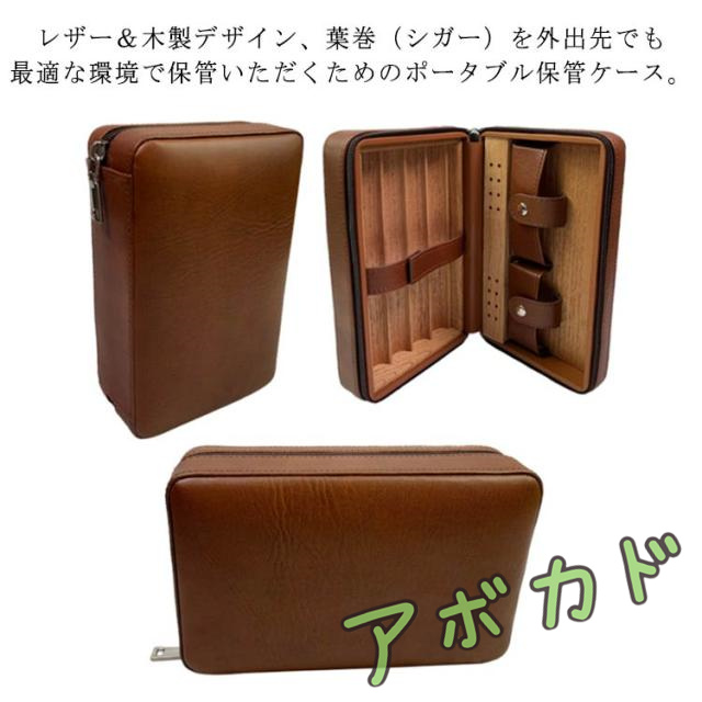 | レザー&木製デザイン、葉巻(シガー)を外出先でも最適な環境で保管いただくためのポータブル保管ケース。 内部には貴重なレッドシダーを使用した本格的な保管庫です。 また、シガーカッター、ガスライターいれ付き。 ケースにピッタリ収納ができるので、旅先やお出かけ先でもスマートに葉巻を持ち運ぶことが出来ます。 シガー愛好家として、自身やあなたの友人に完璧なギフト! | |