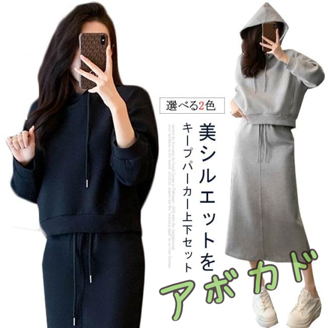 | 美シルエットをキープパーカー上下セット シンプルで可愛いスウェットパーカー&スカートのセットアップ。 短めのトップスと腰高見えなロングスカート、絶妙なバランス◎ ボリュームあるフード&タック入りスカート、後ろ姿も素敵! レギンスやタイツ、トレンカなどと組み合わせたコーデもOK。 セットアップで簡単にカジュアルスタイルの完成です。 通学やちょっとしたお出かけなどデイリーにマルチにいろいろなシーンで着回しが利くかわいいカジュアルワンピースです♪ | |