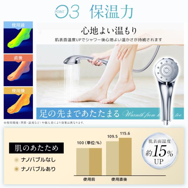 柔らかな水流が肌を優しく包み込み、保湿効果を高めます。毎日のシャワーでしっとりとしたツヤ肌を実感でき、乾燥を防ぐ効果も期待できます。