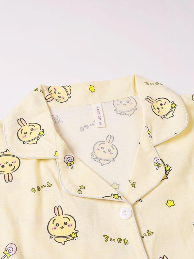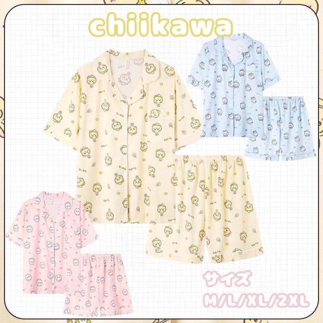 ちいかわ パジャマ レディース 夏用 ウサギ 半袖半ズボン 綿100% 吸汗速乾 通気性 ゆったり かわいい 寝間着 長パンツ