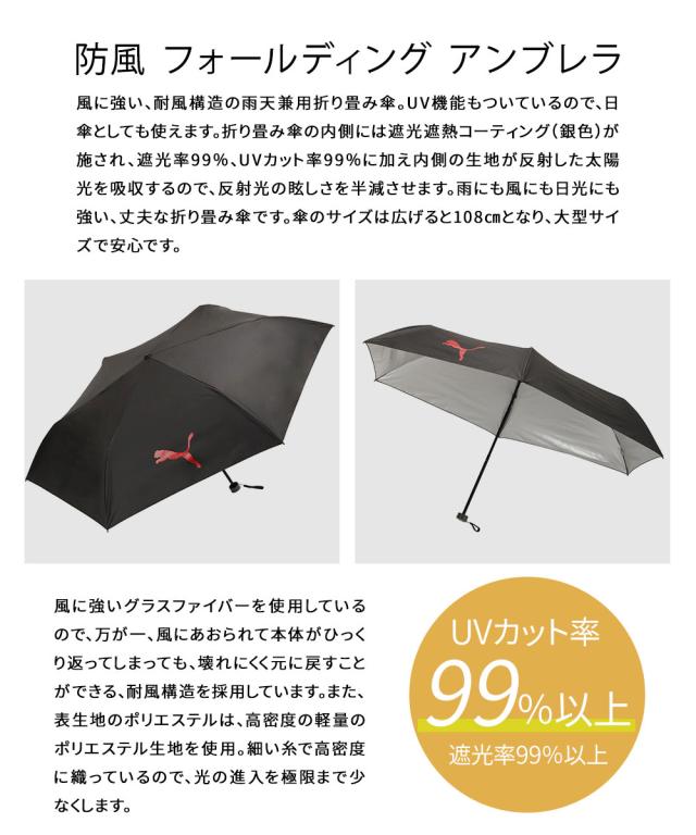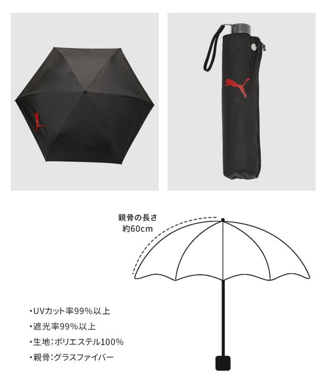 プーマ 傘 折りたたみ 晴雨兼用 丈夫 耐風 日傘 遮光 uvカット 紫外線 日焼け 対策 手開き 60cm 大きめ 大型 風に強い UVカット 軽い メンズ レディース 男女兼用 カジュアル 置き傘 予備 レイングッズ 折りたたみ傘 雨具 アンブレラ 傘 雨傘 黒 ブラック PUMA 054946