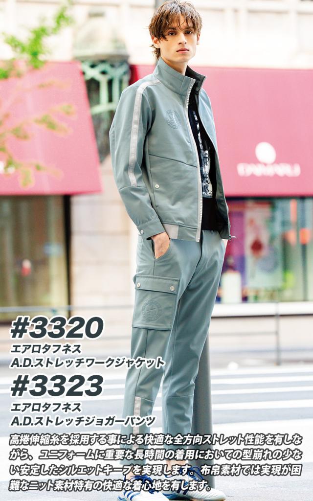 アイズフロンティア 2025年 秋冬 新商品 エアロタフネスA.D.ストレッチワークジャケット ジョガーパンツ 上下セット 3320-3323 ニット素材 通気性 シンプル スタイリッシュ ユニフォーム オールシーズン 定番 作業着 作業服 I’Z FRONTIER