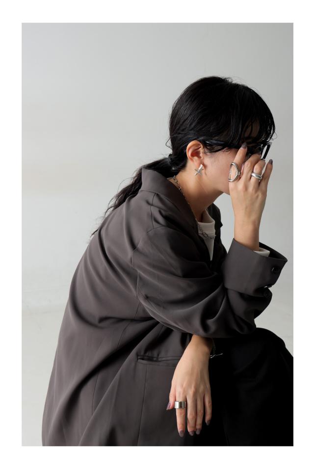 柄は施さず、形状で魅せるスタイルでコーディネートの主役にもなる存在感です。