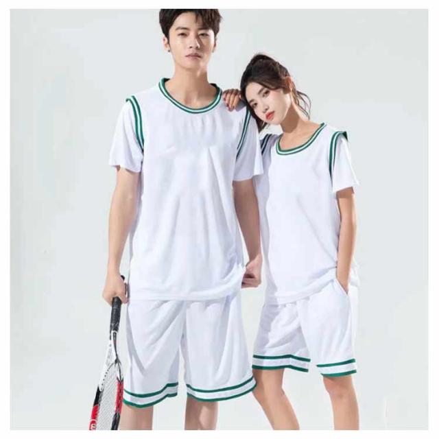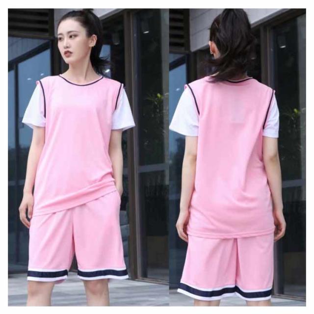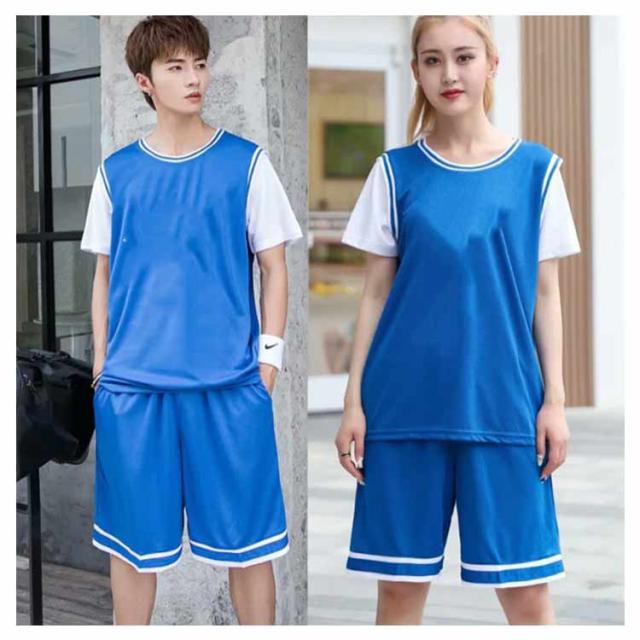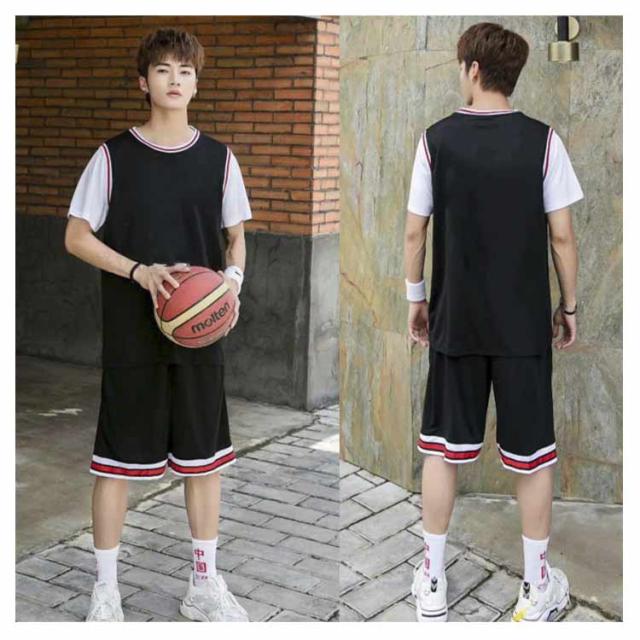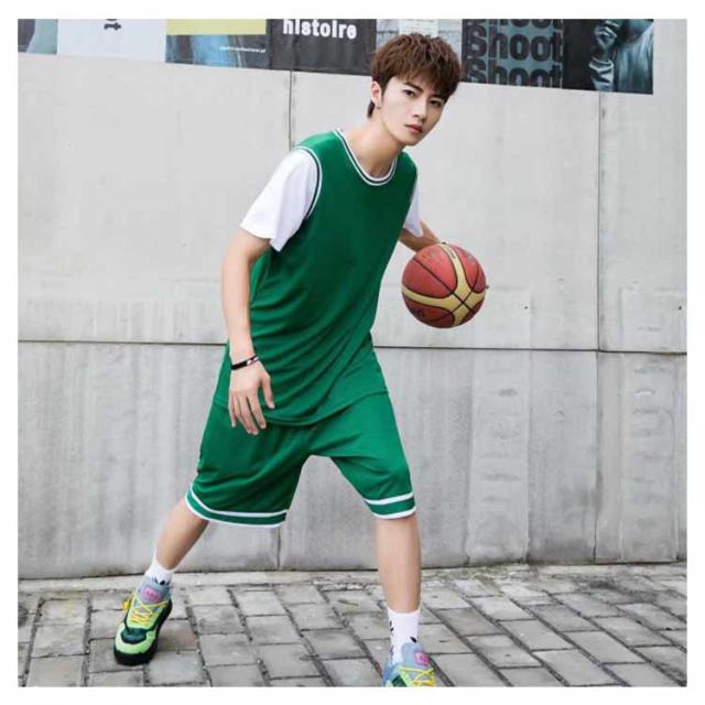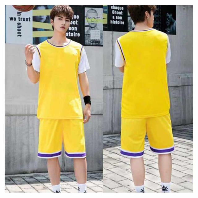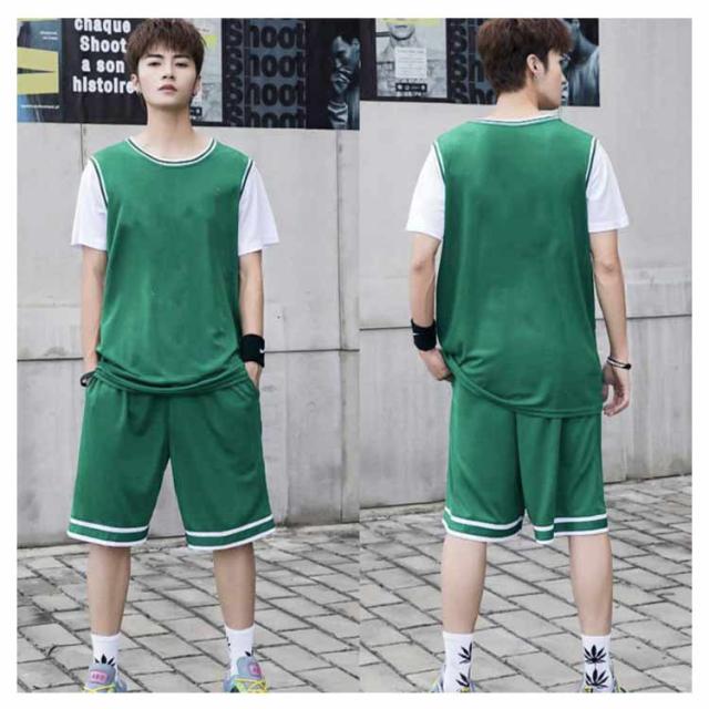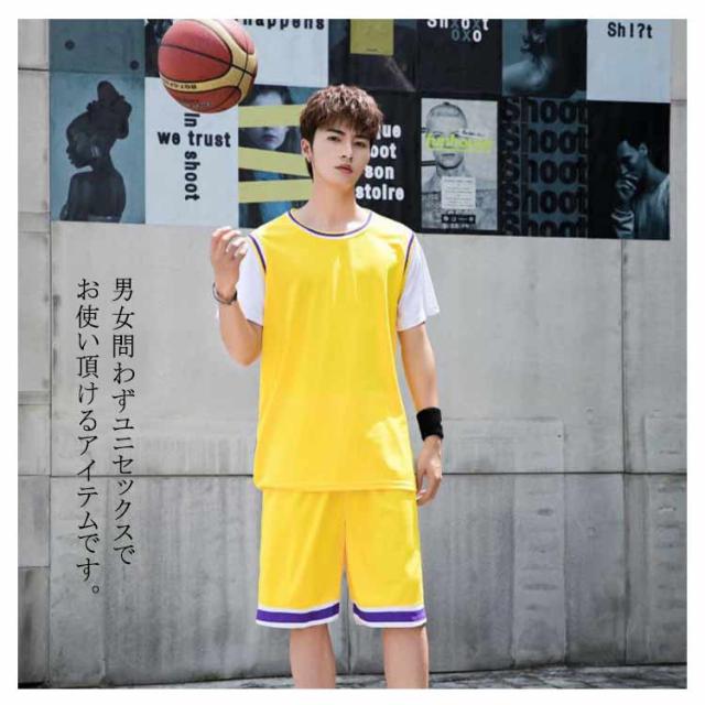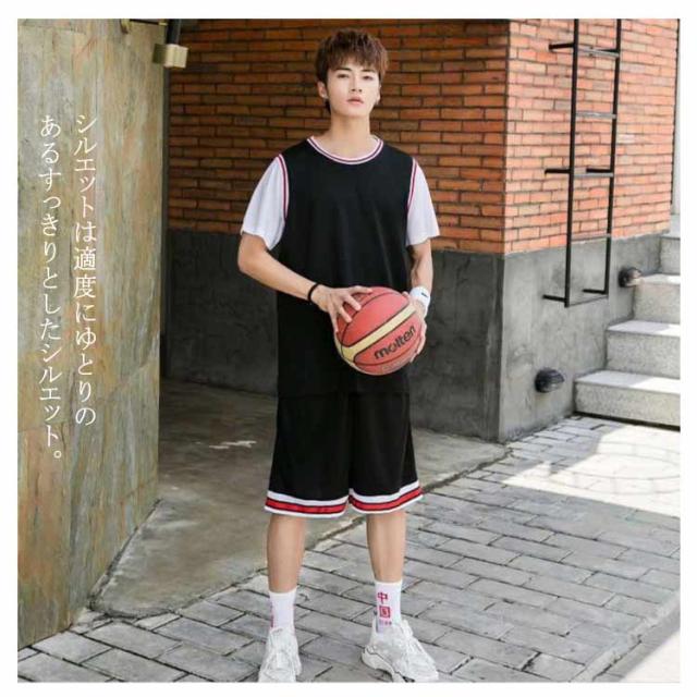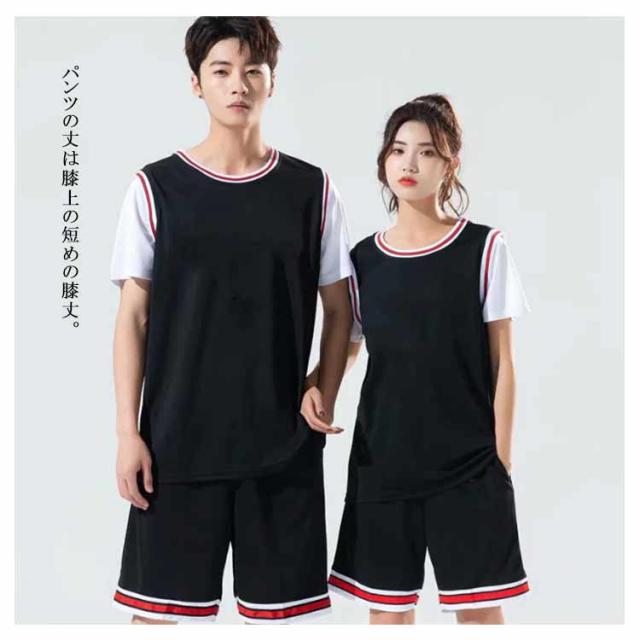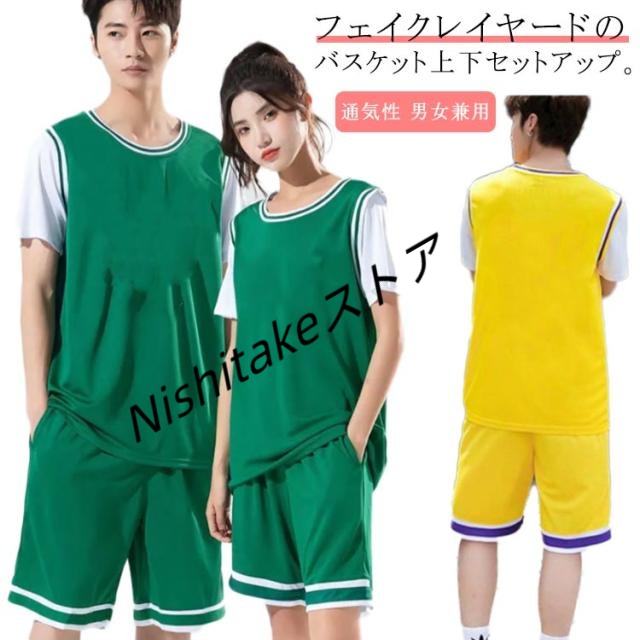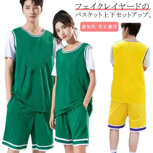 バスケ 上下セット メンズ レディース 男子 女子 半袖 ユニフォーム フェイクレイヤードTシャツ ハーフパンツ ショートパンツ 学生 重ね着 レイヤード風 ウェストゴム 通気性