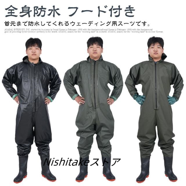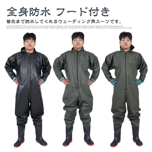 ウェーダー 胴長靴 防水つなぎ 長袖 全身防水 フード付き チェストハイウェダー 長靴 メンズ レディース 水産業 胴付長靴 工場作業 防水 農作業 雨天作業 ウェーダー 漁業 田植え 男女兼用 漁業 釣り 通気性 胴付き 完全防水 水仕事 農業 潮干狩り