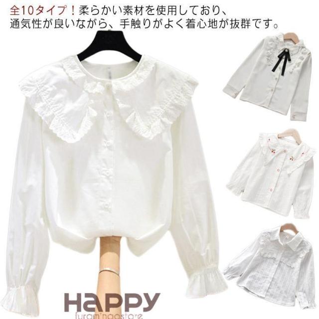 全10タイプ! ブラウス 女の子 シャツ おしゃれ リボン付 襟付き 白シャツ 長袖 スクール ブラウス 子供服 フォーマルブラウス キッズ トップス