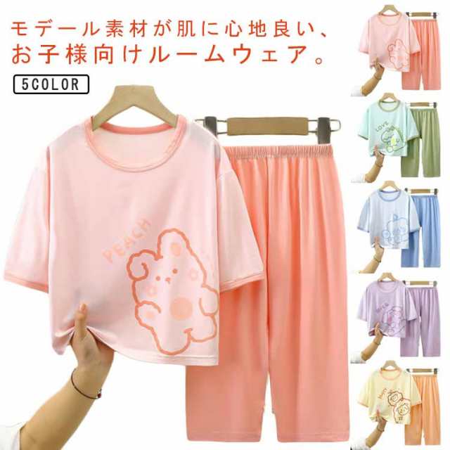 ルームウェア 部屋着 ベビー 子供服 キッズ パジャマ ルームウェア 涼しい 夏用 クロップドパンツ パジャマ 薄手 パジャマ 寝巻き 寝間着 ナイトウェア 肌着 七分袖 セットアップ かわいい 上下セット ブルー ピンク グリーン パープル