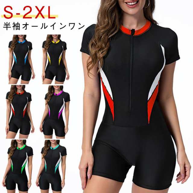 フィットネス水着 ジム ジップアップ 海水浴 レディース 練習用 フィットネス水着 水着 オールインワン 女性 体型カバー 運動用 フィットネス プール 半袖 おしゃれ 着痩せ ママ水着 30代 40代 50代 スイムウェア 水泳