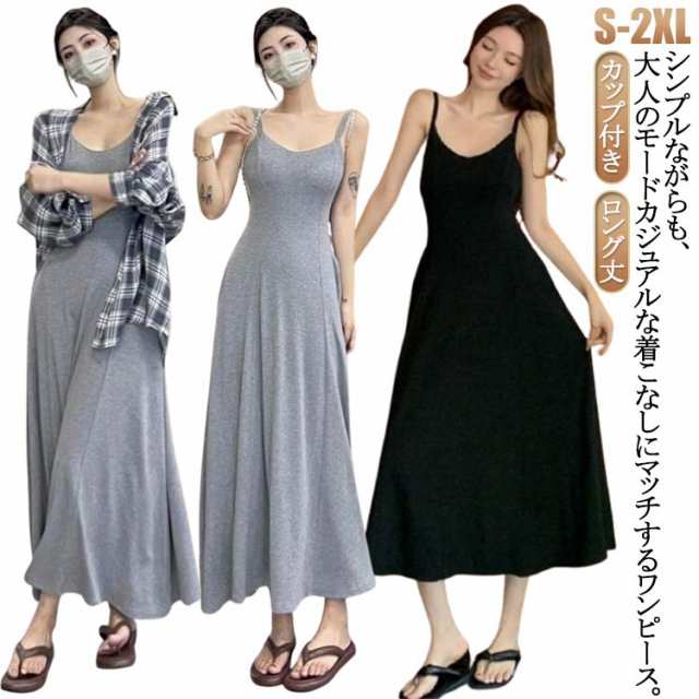 フレアワンピース フレアワンピース ロング丈 カップ付き ロング 黒 フレアワンピース ワンピース 夏 きれいめ ロング マキシワンピース 送料無料 ワンピース ジャンパースカート カップ付き インナー キャミソールワンピース レディース 春 夏