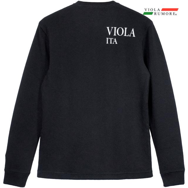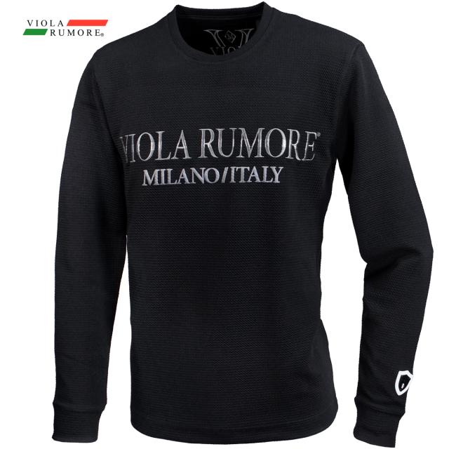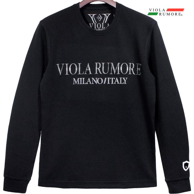 VIOLA rumore ヴィオラ ビオラ Tシャツ 長袖 クルーネック 刺繍 ロゴ メンズ ロンT(ブラック黒シルバー銀) 62111