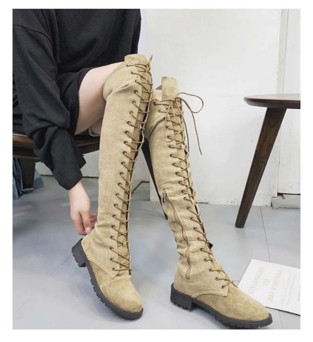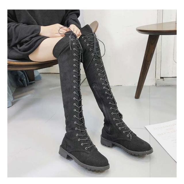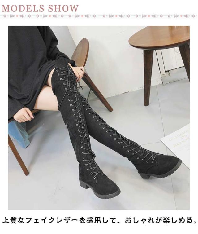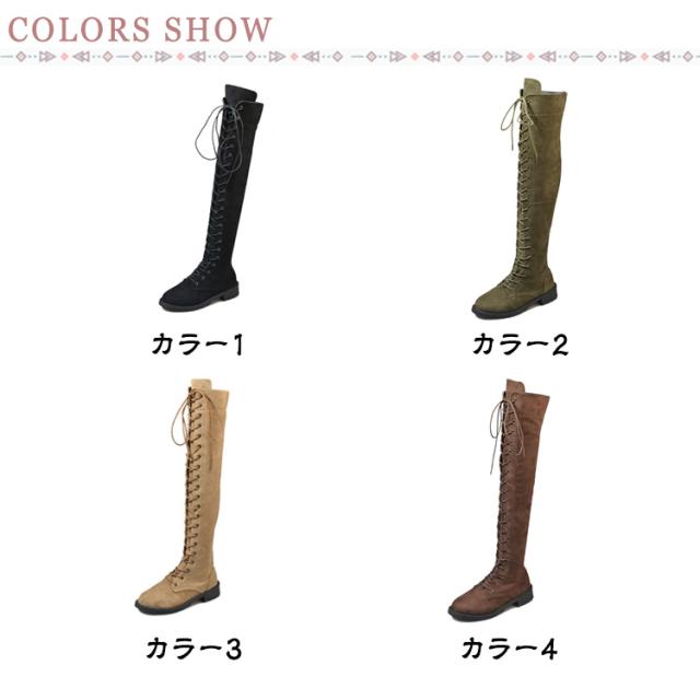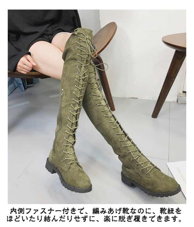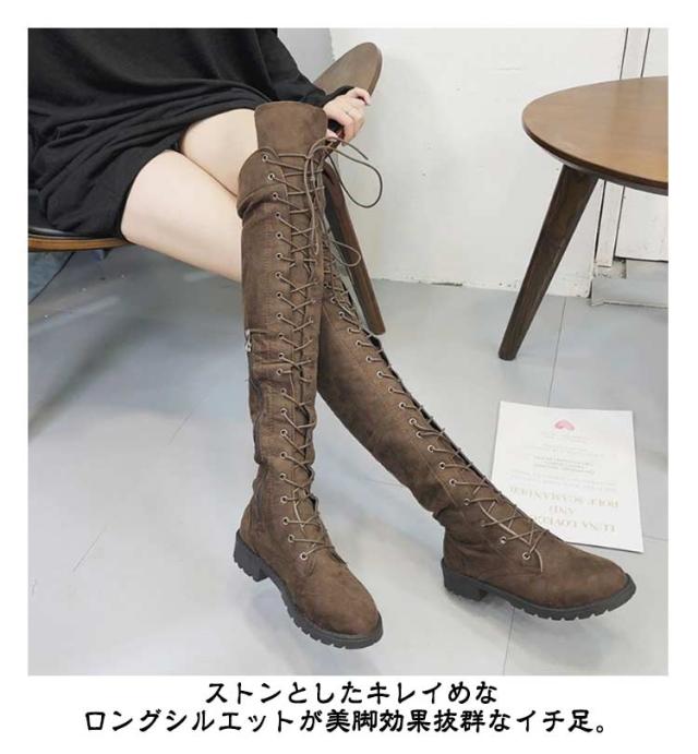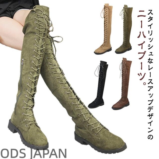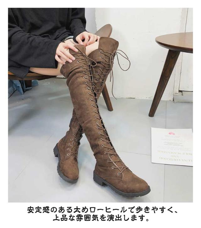 編み上げ ロングブーツ ニーハイブーツ レースアップ レディース ブーツ ローヒール サイドファスナー 美脚 着?せ 秋冬 コンフォートブーツ 暖かい おしゃれ かわいい 22.0-26.5cm