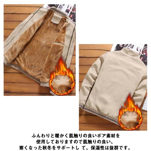 | 裏起毛タイプと普通タイプが選べる!メンズ裏ボアジャケットが登場! ふんわりと暖かく肌触りの良いボア素材を使用しておりますので肌触りの良い、寒くなった秋冬をサポートし て、保温性は抜群です。 両側のポケットはスマートフォンなどの小物を入れておくことも可能 。 体を包み込むような柔らかな着用感が魅力です。タウンユースやスポーツ観戦など幅広いシーンで活躍してくれます。 | |
