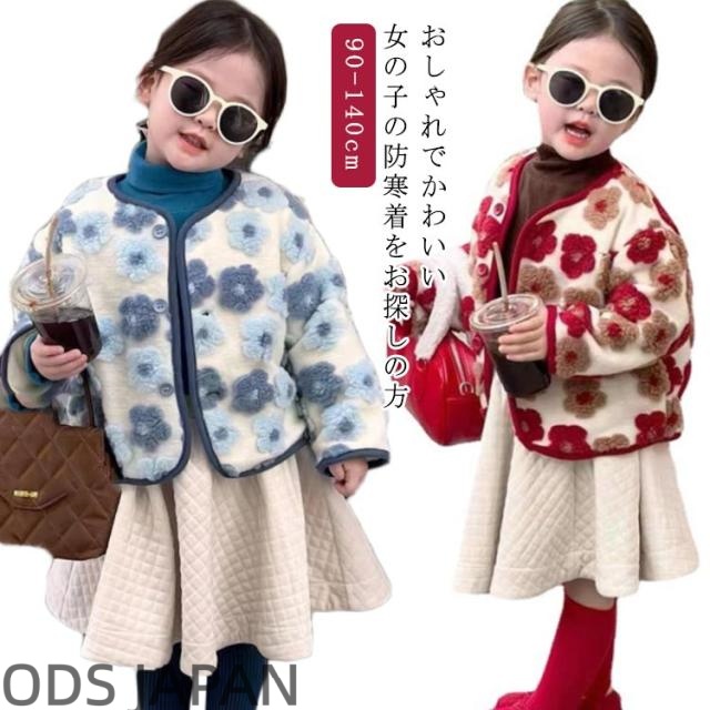 ボアコート キッズ ボアジャケット ボアブルゾン コート 暖か ボア 花柄 フリース もこもこ ナチュラル 女の子 キッズ服 人気 新作 送料無料 ファッション おしゃれ