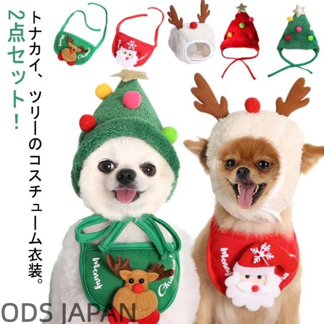 | かぶるだけでクリスマス雰囲気に!トナカイ、ツリーのコスチューム衣装。2点セット! ウェアよりも簡単なアイテム!マジックテープ/紐仕様なので簡単に着脱できます。 素材が柔らかくてつけてもさほど嫌がりません。わんこの耳を出す穴があるのもいいです。 ペットも一緒におうちクリスマスを楽しみましょう! | |