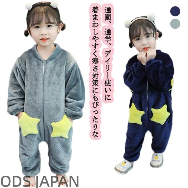送料無料 キッズ パジャマ 秋冬 ロンパース 厚手 もこもこ 星柄 可愛い 長袖 ルームウェア 部屋着 フランネル 寝巻き こども 男の子 女の子 100 110 120 130 140