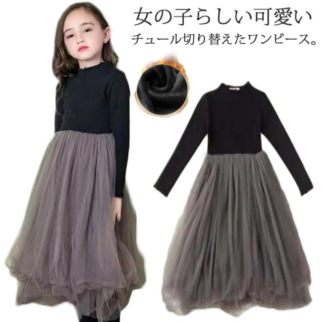チュールワンピース 子供服 キッズ 子供 長袖ワンピース 子供ワンピース 長袖 ふわふわ チュール 春 秋 冬 結婚式 発表会 パーティードレス 卒園式 入園式 入学式 可愛い クリスマス プレゼント 女の子