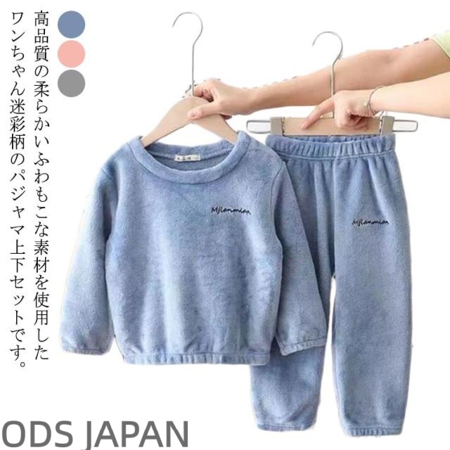 送料無料 ルームウェア もこもこ キッズ 上下セット パジャマ 防寒 無地 裏起毛 ナイトウェア ホームウェア フリース 部屋着 ボア 子供 女の子 男の子 ユニセックス 暖かい 秋冬 可愛い 起毛 長袖 寝間着 寝巻き プルオーバー 冬物 お揃い セットアップ トップス パンツ