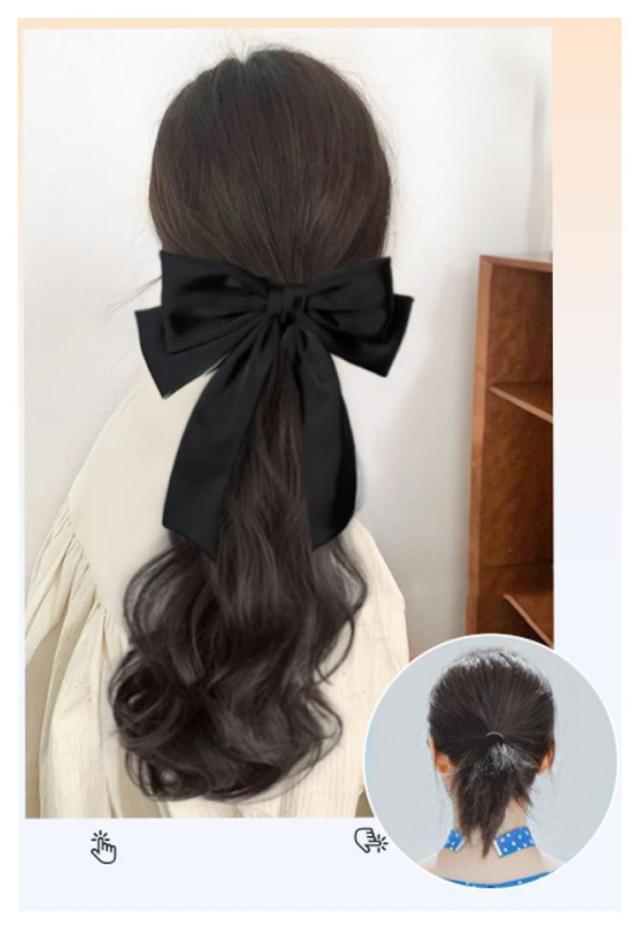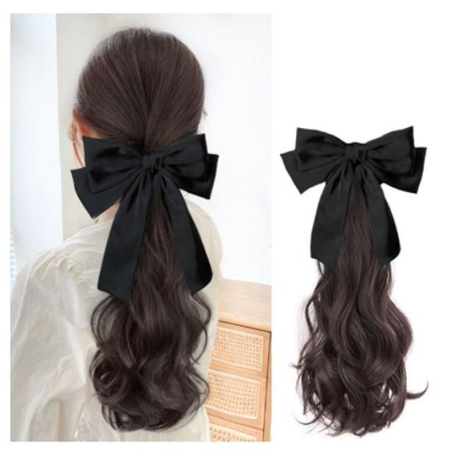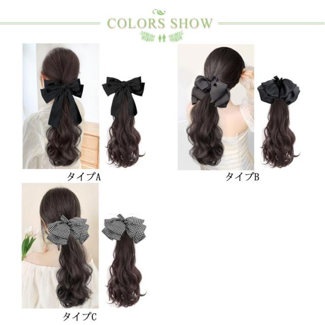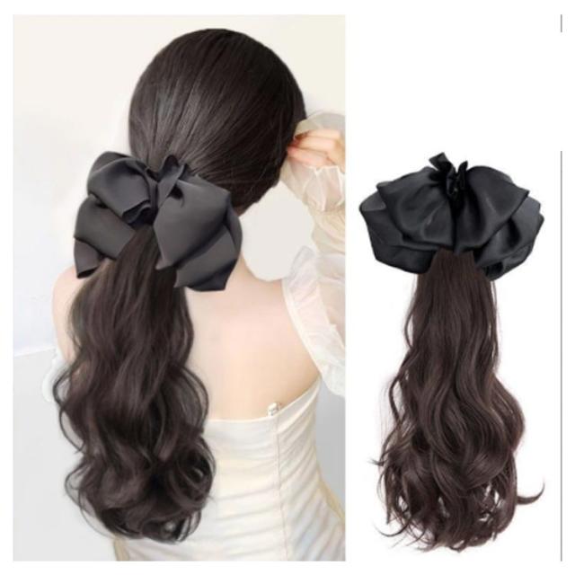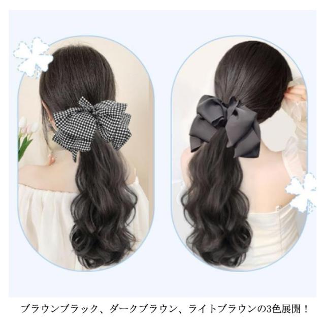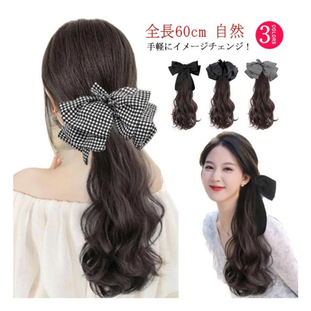 リボン付き ポイントウィッグ ウェーブ ワンタッチ 自然 ロング カール ウイッグ つけ毛 クリップ エクステ ウィッグ 結婚式 ハロウィン コスプレ ブラック ブラウン ポニーテール かつら テールウィッグ 女性 レディース ポニーテールウィッグ 部分 送料無料