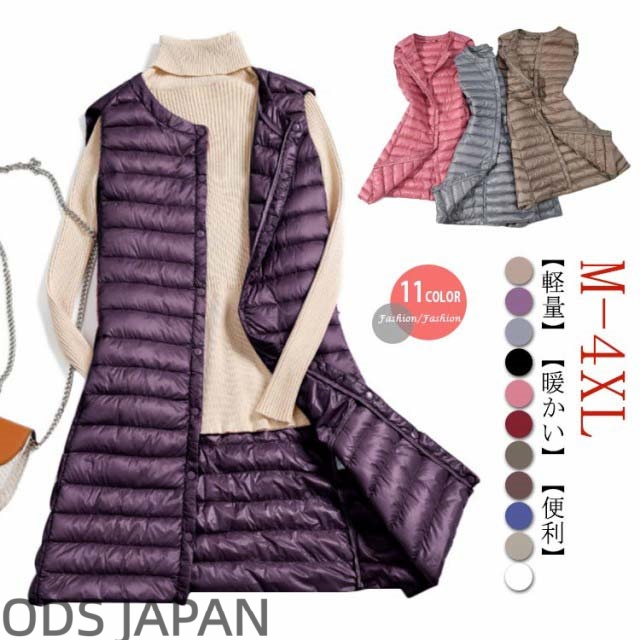レディース ロングダウンベスト ロング丈 軽量 ダウンコート ノーカラー インナーダウン 超軽量ダウンベスト レディース ライトダウン 無地 アウター ゆったり 大きいサイズ 送料無料