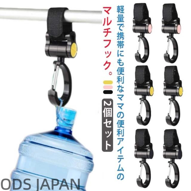 ベビーカーフック 2個セット マジックテープ式 マルチフック バギーフック 360度回転式 耐荷重3kg 荷物フック 自転車 車椅子 ペットバギー キャリーケース 送料無料