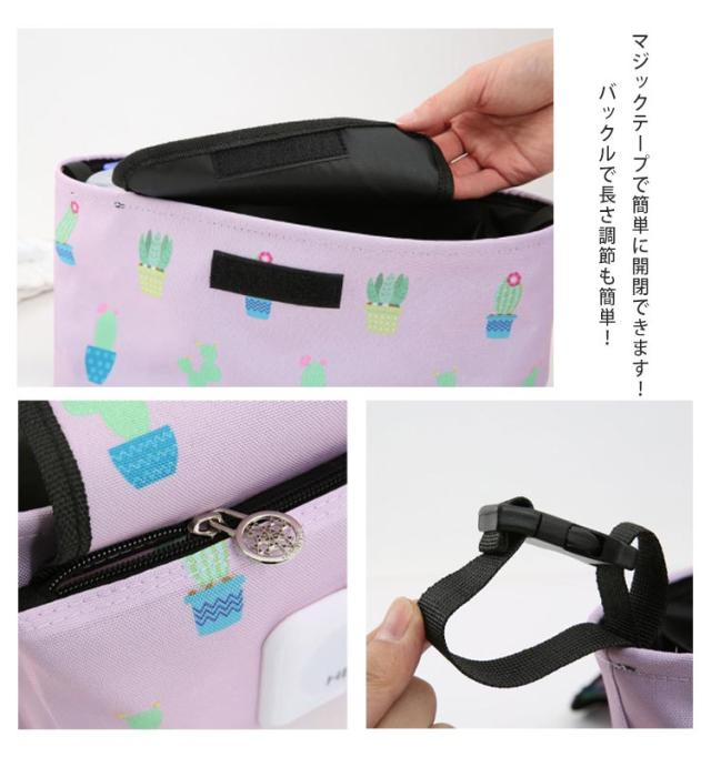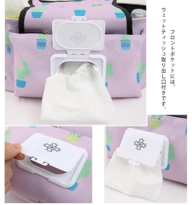 | お出かけにとっても便利なベビーカーに取り付け用のバッグです。 大きなスペースにはおむつ、哺乳瓶など必要なものをいろいろ入れられます。 サイドポケットの仕切りにはスマホもラクラク収納できます。 フロントポケットには、ウェットティッシュ取り出し口付きです。 マジックテープで簡単に開閉できます!バックルで長さ調節も簡単! | |