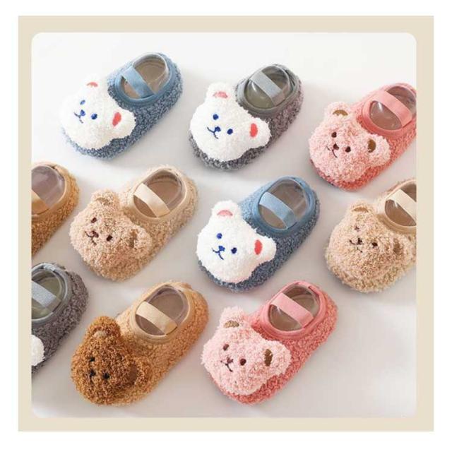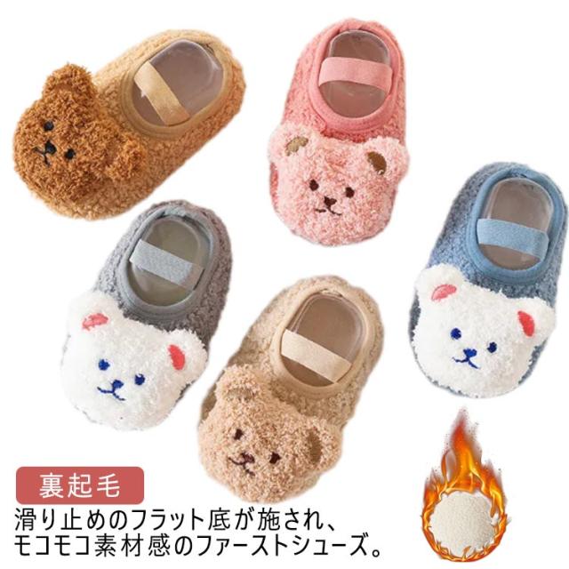 ファーストシューズ 赤ちゃん ベビー ソックスシューズ ベビーシューズ 裏起毛 男の子 女の子 ルームシューズ トレーニングシューズ 靴 靴下 滑り止め 裏ボア 熊 かわいい 誕生日祝い 1歳 2歳 3歳
