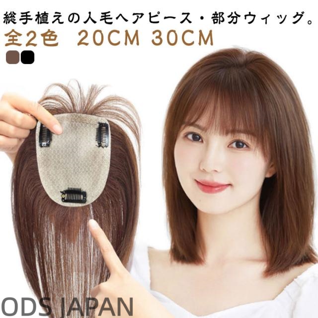 ウィッグ ヘアピース 部分ウィッグ 人毛 レディース 白髪隠れ 増毛 トップカバー 手植え 超自然 軽量 ロング ピン3つ ナチュラルブラック ブラウン 10x12cm リアル人工皮膚 20CM 30CM 全2色
