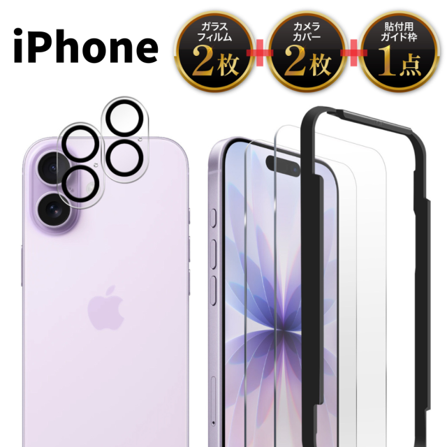 iPhone17 ガラスフィルム レンズカバー iPhone17Pro カメラフィルム 保護フィルム 各2枚 iPhone17 フィルム ガラスフィルム ガイド枠付き アイフォン アイホン