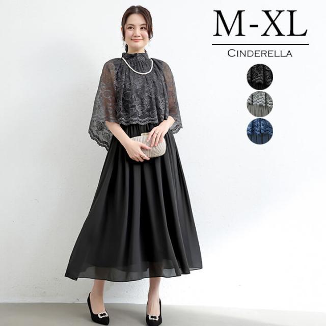 パーティードレス 結婚式 ワンピース ロング丈 大きいサイズ 20代 30代 40代 エレガント 大人 可愛い ママ ドレス フォーマル レディース パーティー 秋冬 オールシーズン 二次会 演奏会 謝恩会 同窓会 ノースリーブ レース ケープ 二の腕カバー 異素材 ブラック ダークグレー ネイビー 黒 黒灰 紺 9号 11号 13号 ycpt23