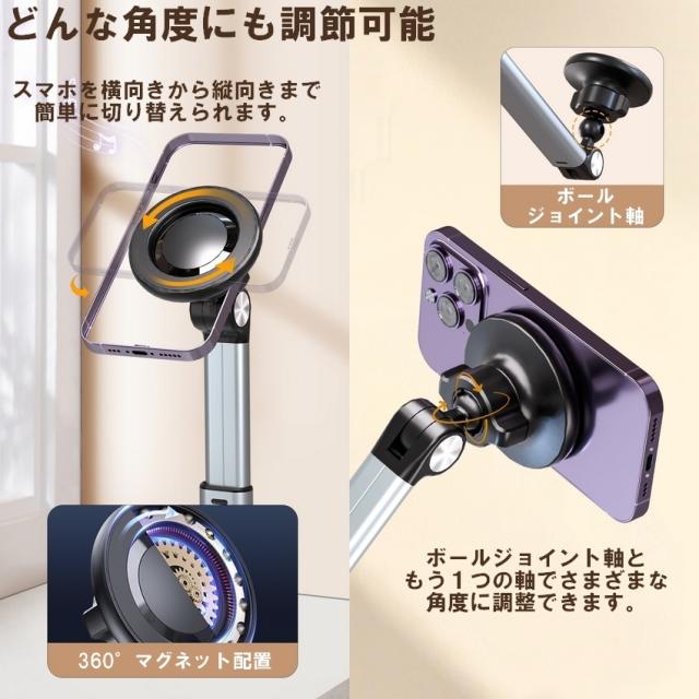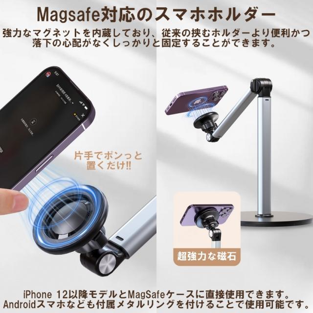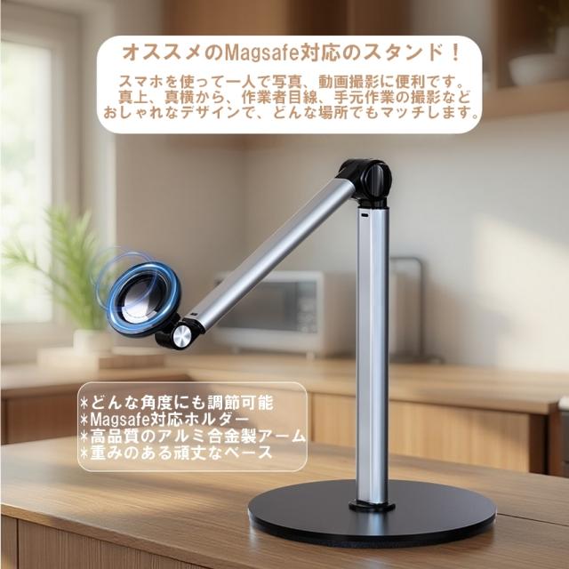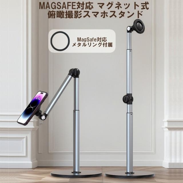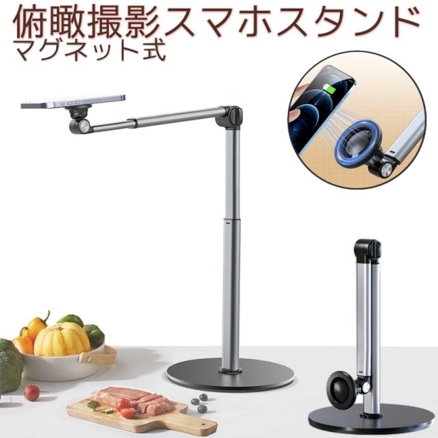 スマホスタンド 俯瞰撮影 真上から撮影 俯瞰 撮影 スマホ スタンド スマホホルダー Magsafe マグセーフ マグネット アーム 撮影用 三脚 卓上 高さ調整 伸縮 動画 アルミ 持ち運び 料理 折りたたみ おしゃれ DIY 手元撮影 iphone Android 自撮り 自立 機材 送料無料