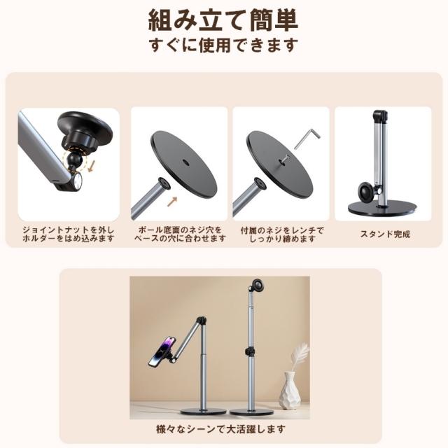 このスマホスタンドは、真上からの俯瞰撮影を可能にする便利なアイテムです。
