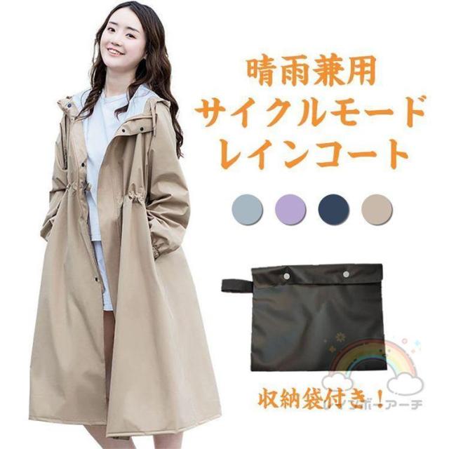 レインコート レディース 自転車 通学 おしゃれ 通勤 レインウエア オシャレ トレンチコート風 レインウェア フードつき かっぱ 雨具 Aライン ロング丈可愛い
