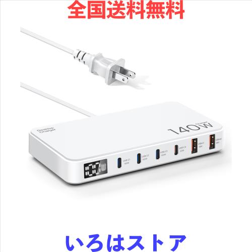 140W USB充電器 Type-c 6ポート 急速充電器【単ポート100W USB-C*3+20W USB-C*1+USB-A*2、PPS&PD3.0&QC4+対応】PSE認証 PC同時充電 ノー