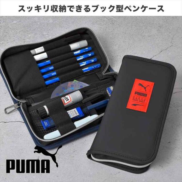 ペンケース PUMA プーマ 筆箱 小学生 男の子 男子 中学生 高学年 PM570 シンプル 黒 青 ブラック ネイビー ブルー コンパクト スリム ブック型 ブックタイプペンケース ペンポーチ ペンホルダー 多機能 かっこいい おしゃれ スポーツ ブランド 文房具 文具 収納 入学 新学期