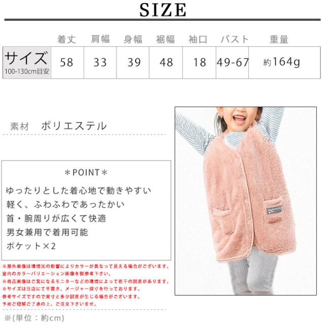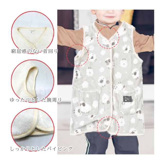 ルームウェア パジャマ キッズ 女の子 男の子 100 110 120 130 秋 冬 着る毛布 ベスト もこもこ ふわふわ あったか スリーパー 上着 部屋着 ファー ボア 前開き 袖なし 親子 子供 かわいい おしゃれ 無地 動物 柄