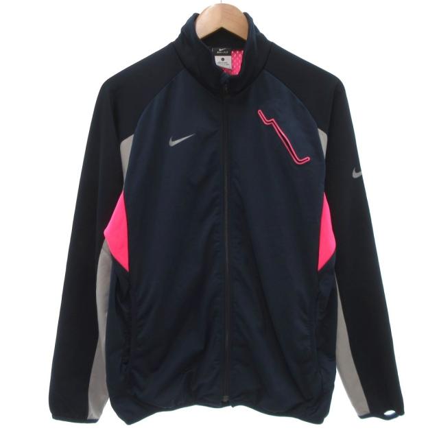 【中古】ナイキ NIKE ドライフィット ジャージ ジャケット ロゴプリント L 紺 ネイビー ピンク /JS ■YHS2 メンズ
