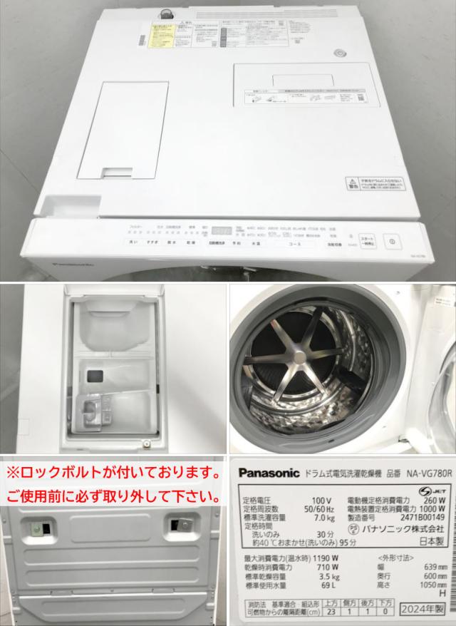 D8173NU 90日保証!【美品】ドラム式洗濯乾燥機 洗濯7kg 乾燥3.5kg 右開き パナソニック NA-VG780R-H 24年製