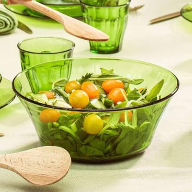 フランスの有名なグラスウェアブランドDURALEX社のボウルです。取り分け用の大皿やたっぷりサラダにぴったりで、家族の食卓で使いやすいサイズ感です。耐熱のため、下ごしらえから調理までこなせ、出来立てをそのまま食卓にサーブできます。