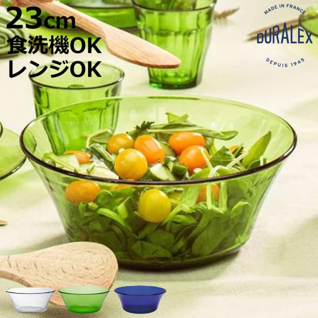 DURALEX デュラレックス ニセンボウル 23cm ( 食洗機対応 電子レンジ対応 強化ガラス 食器 サラダボウル ガラス ガラス製 クリア グリーン サファイア )