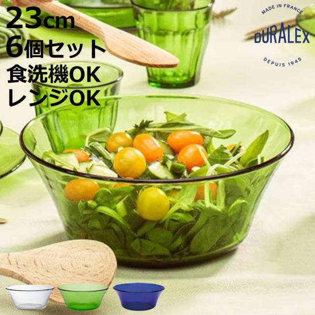 DURALEX デュラレックス ニセンボウル 23cm 同色6個セット ( 食洗機対応 電子レンジ対応 強化ガラス 食器 サラダボウル ガラス ガラス製 クリア グリーン サファイア )