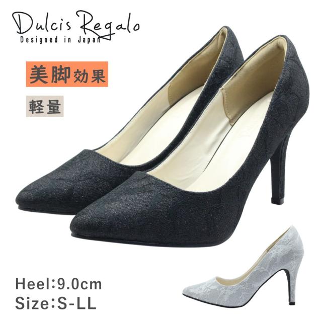 | DulcisRegalo ドルキスレガロ 8500 レディース パンプス ヒール ポインテッドトゥ ラメ レース 軽量 靴 |