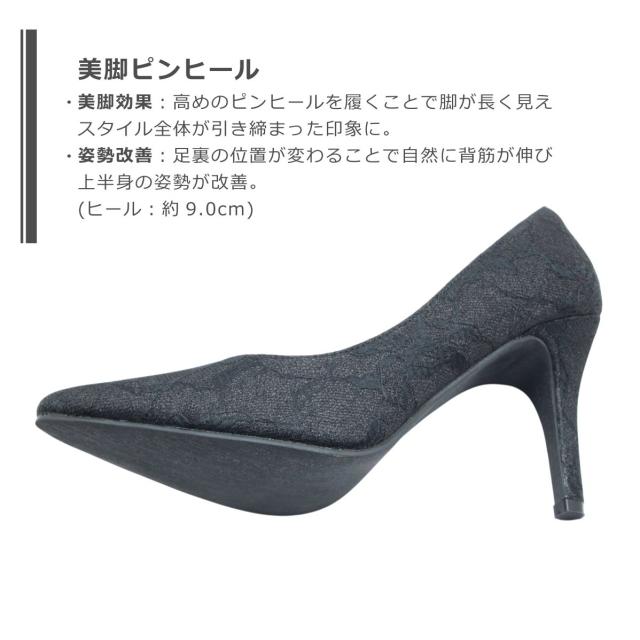 DulcisRegalo ドルキスレガロ 8500 レディース パンプス ヒール ポインテッドトゥ ラメ レース 軽量 靴