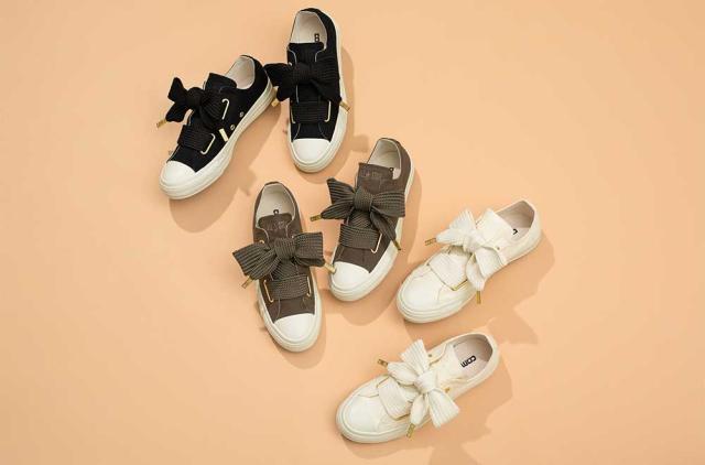 人気のリボンモチーフを幅のかなり広いシューレースで表現したデザイン。
