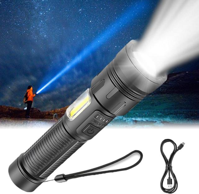 懐中電灯 LED 20000ルーメン【Type-C充電式・IPX6防水・ズーム機能】超高輝度ライト 7モード 軽量コンパクト 長時間点灯 防災 キャンプ 登山 防犯対応