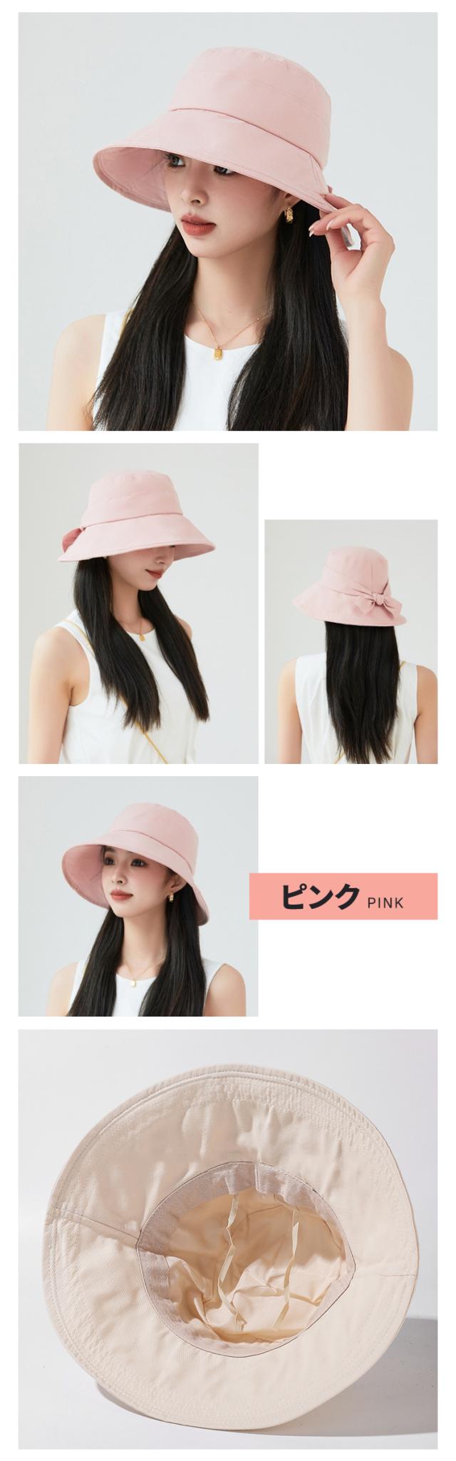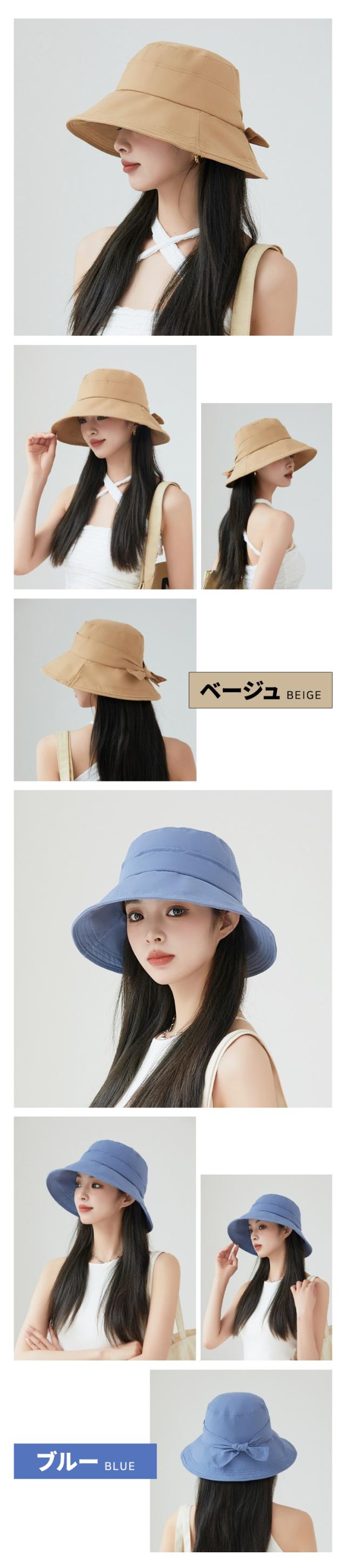 - 幅広いつばで360°紫外線から顔周りをしっかり守る。