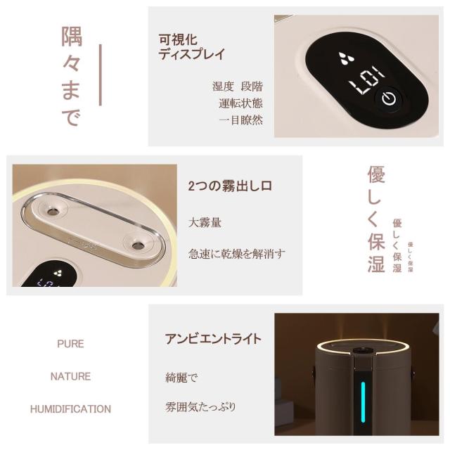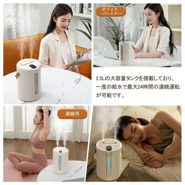 超音波式加湿器 加湿器 大容量 2.5L 卓上 超音波式 卓上加湿器 かしつき ライト おしゃれ ダブル噴霧 ミスト超静音 部屋 寝室 乾燥対策 USB お手入れ簡単