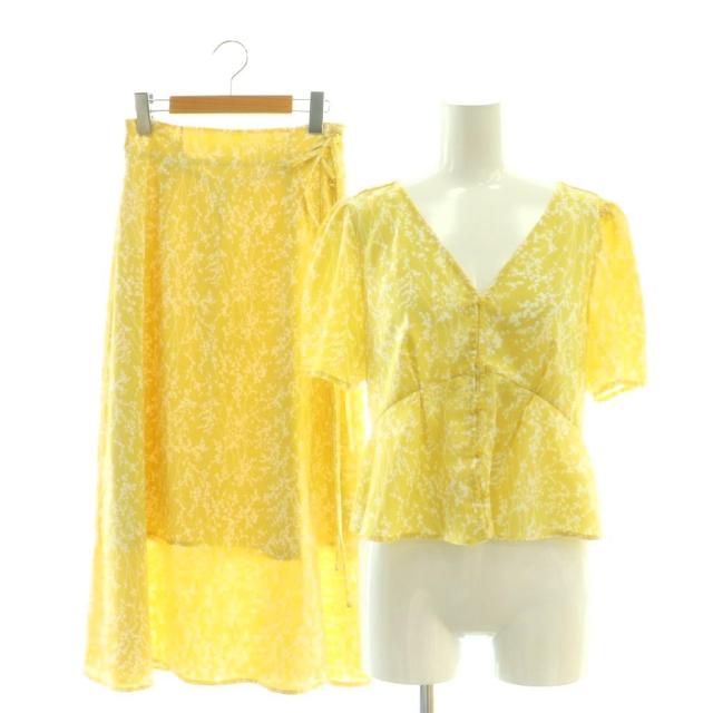 【中古】スナイデル SNIDEL セットアップ 上下 ブラウス 半袖 Vネック スカート ロング フレア 花柄 1 黄色 白