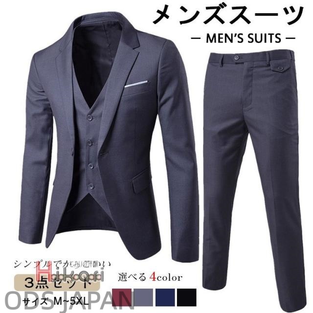 スリーピーススーツ セットアップ メンズ ビジネススーツ 結婚式 スーツセットアップ 3ピーススーツ 細身 通勤