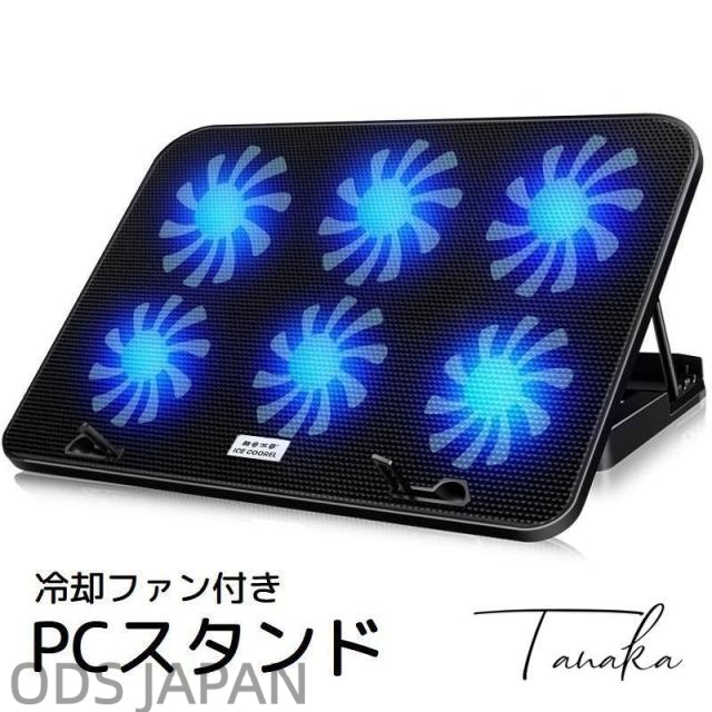 PCスタンド 冷却ファン付き USB接続 ノートパソコン用 タブレット用 クーラー 放熱 メッシュ 折り畳み 角度調節可 作業台 ブラック 黒