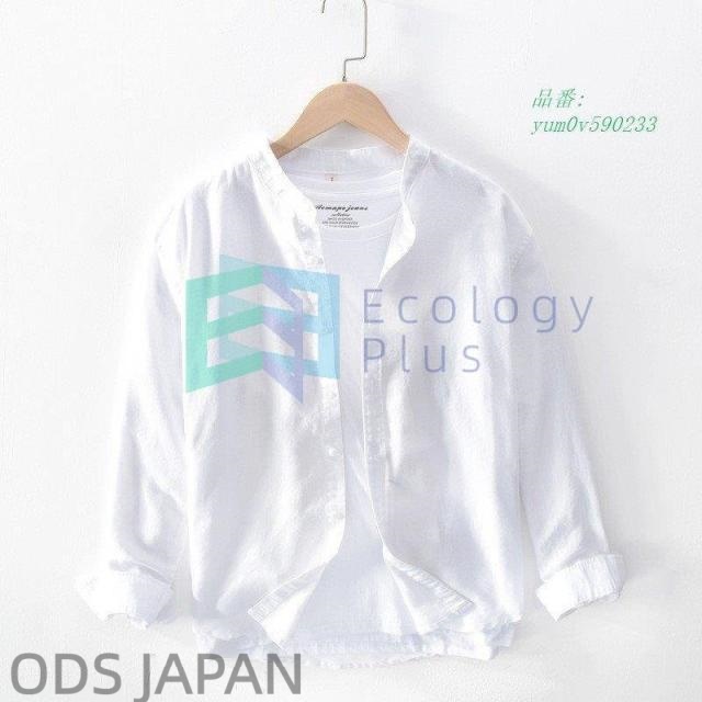 シャツ カッターシャツ カラーフル カッコイイ ノーカラー トップス カジュアルシャツ メンズ 長袖 綿麻シャツ